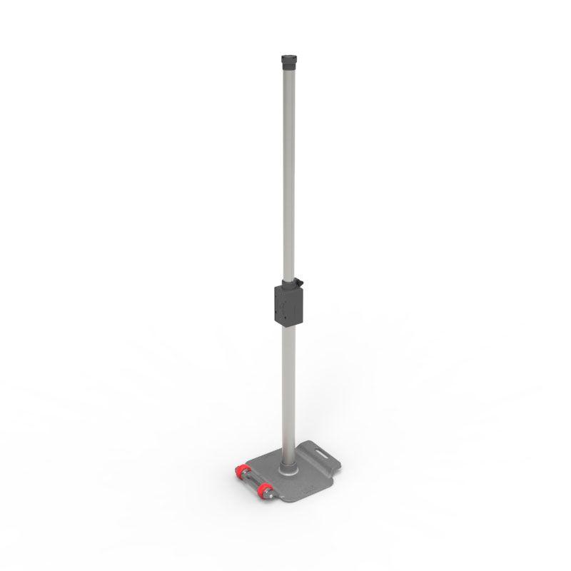 The heavy-duty base includes cast-in lifting handles for safe handling, while the stainless steel post features a top accessory mounting adaptor and integrated Twist-Lok compatibility to accept Pilot belt units and accessories.